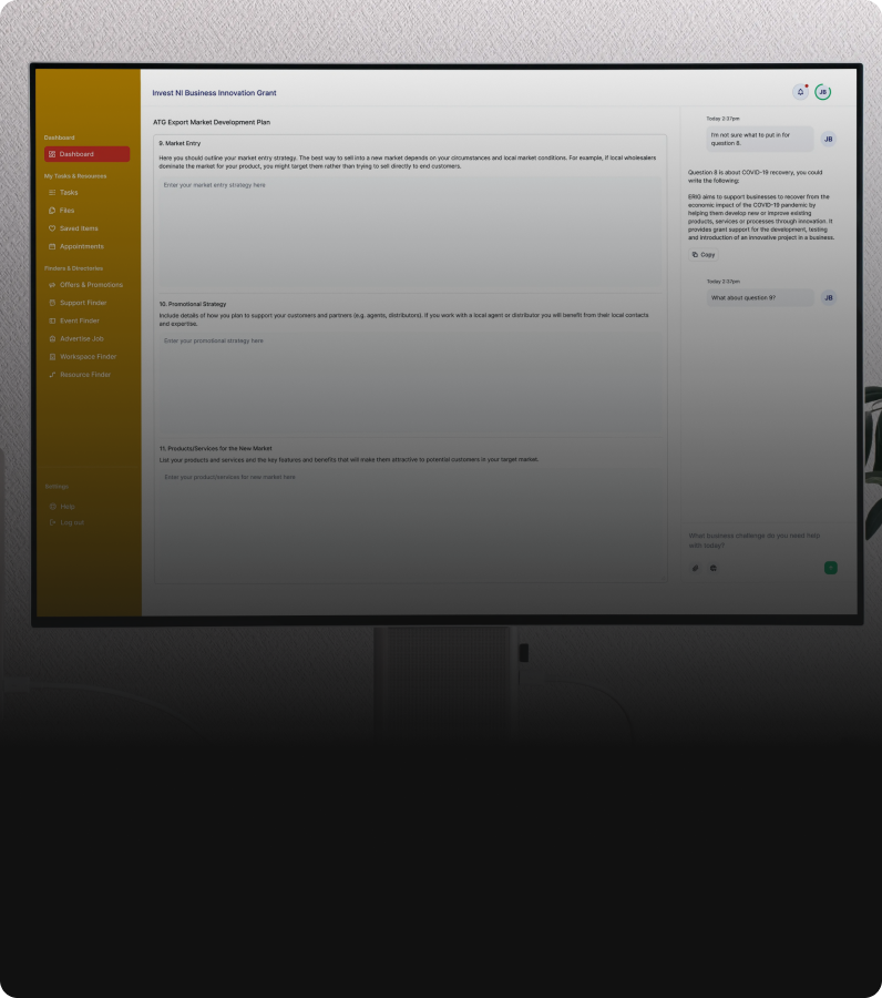 An AI-enabled co-pilot helping startups with bids & applications through guided prompts and contextual support.